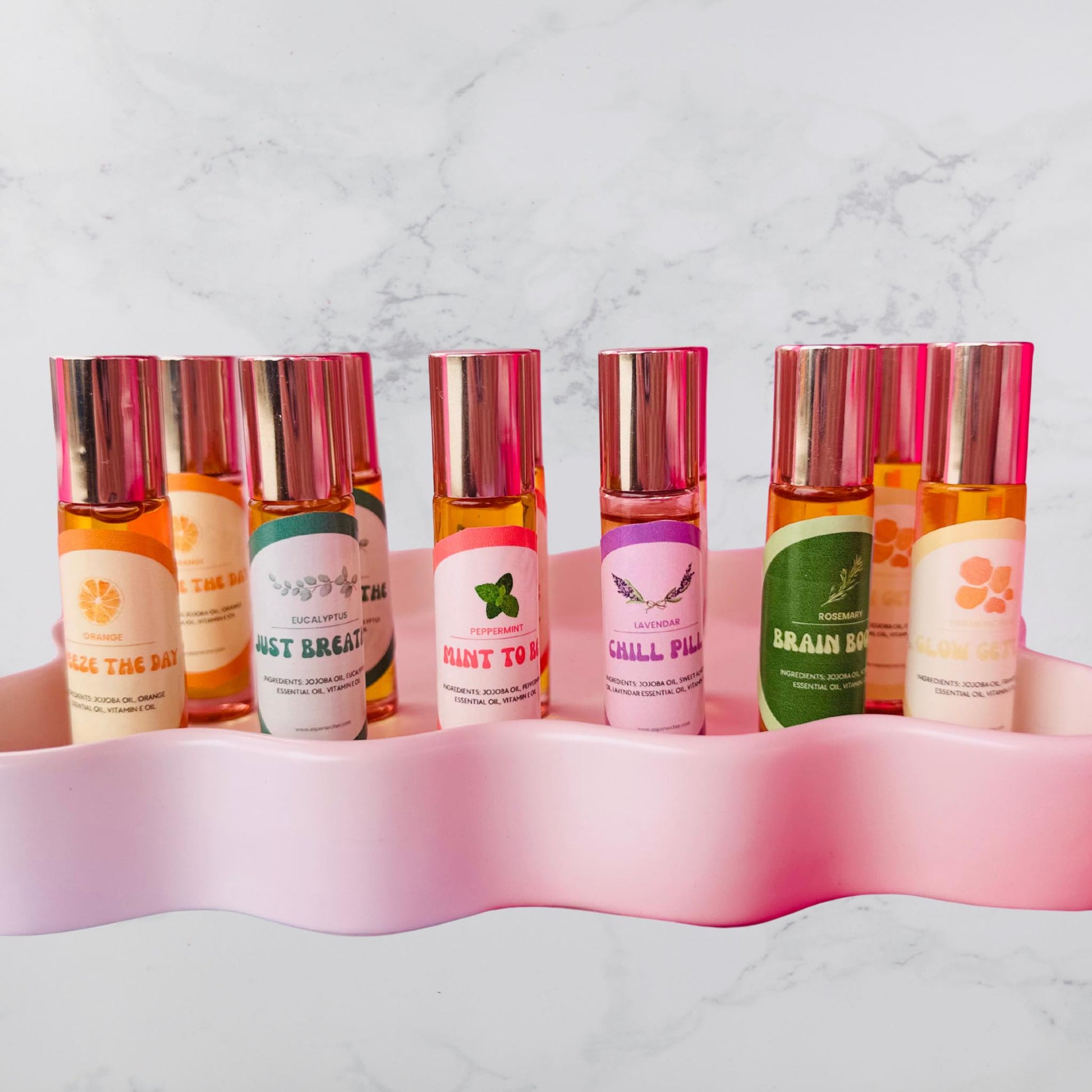 10ml roller bottle of your favorite essential oil blended with jojoba oil + vitamin e oil for extra benefits!